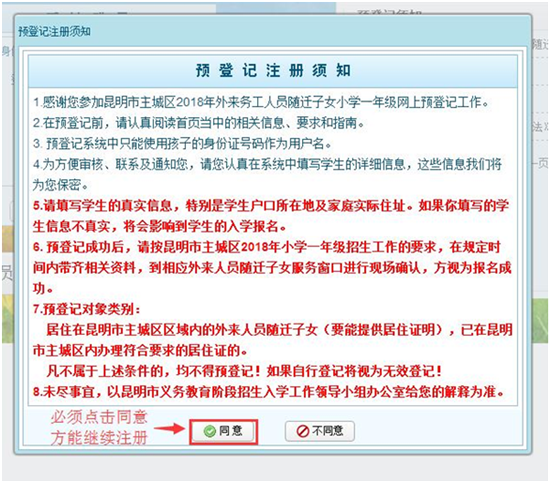 ????2.仔細(xì)閱讀預(yù)登記注冊(cè)須知后,點(diǎn)擊“同意”方可進(jìn)行注冊(cè)。