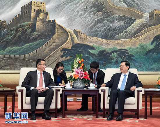 ????新華社北京2月6日電 記者侯麗軍 全國人大常委會(huì)委員長張德江6日在人民大會(huì)堂會(huì)見出席中蒙議會(huì)定期交流機(jī)制會(huì)議的蒙古國家大呼拉爾副主席恩赫阿木格楞。