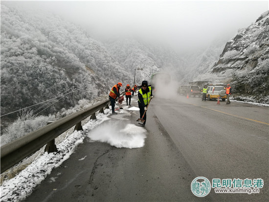 ????昆明信息港訊 1月27日至2月2日,昭通持續(xù)低溫雨雪冰凍天氣,大部區(qū)域最低氣溫降至0℃以下,到處白雪皚皚,一幅冰天雪地的景象,公路結(jié)冰嚴(yán)重,對公路通行及春運工作造成不利影響。昭通路政支隊全員動員,積極投入到抗冰保通工作中,確保春運道路安全暢通。