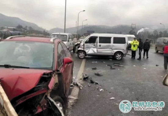 昆明碧雞關(guān)53輛車相撞 4人攀越橋梁墜落身亡 寒潮災(zāi)難令人心痛