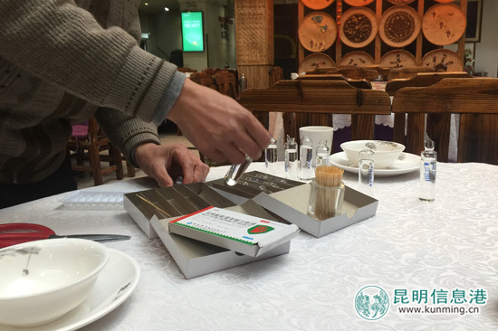 怒江州駐昆辦工作人員為家屬準(zhǔn)備暈車藥。記者合宇聰攝