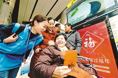 ????北京南站建立咨詢臺(tái)、服務(wù)組、流動(dòng)崗等,確保第一時(shí)間發(fā)現(xiàn)重點(diǎn)旅客,并提供幫助。圖為日前北京南站工作人員引導(dǎo)重點(diǎn)旅客進(jìn)入列車。記者賀勇/攝