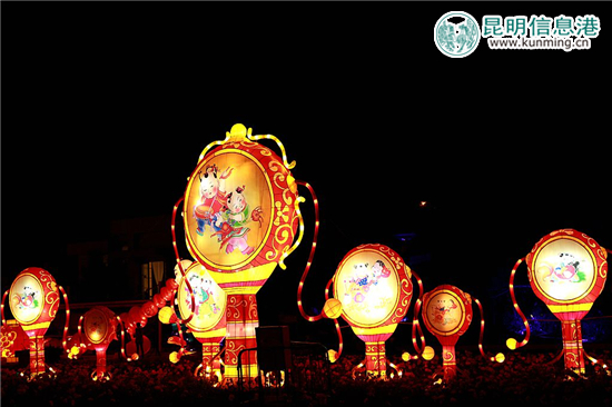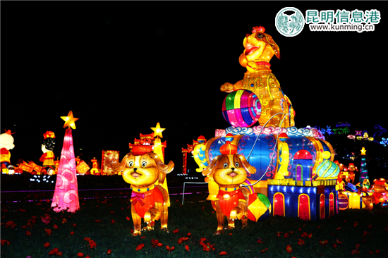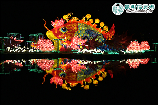 ????此次燈展主題為“邁進(jìn)新時(shí)代·幸福中國年”,燈展的布局分成了歡樂中國年、十九大的光輝、幸福云之南、新春大廟會(huì)、中國館及水上大型彩燈等六大區(qū)域,以形式多樣的彩燈,編織出一個(gè)如夢似幻的夜游場景。