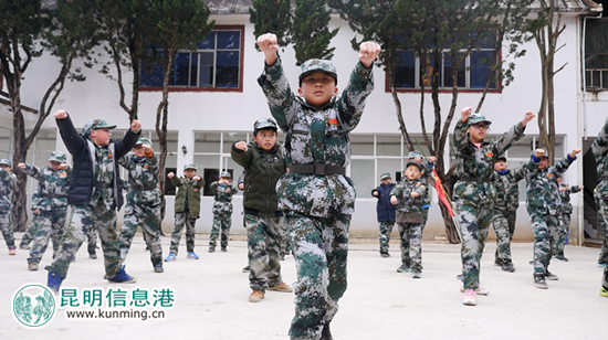 ????2月3日是昆明迎來降溫的第一天,寒冷的天氣并未阻擋50名小營員“從軍”的腳步。“我是你們的教官賈得玉,從今天開始你們就是我的兵,我會嚴格要求你們?,F(xiàn)在回宿舍休整3分鐘,馬上下來集合,站軍姿!”開營第一天,孩子們就在賈教官帶領下開始訓練。