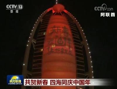 ????新春伊始,阿聯(lián)酋多個知名地標(biāo)建筑都舉辦了春節(jié)主題燈光秀。世界最高建筑哈利法塔披上了紅色的外衣,數(shù)萬盞LED燈組合變幻出萬里長城、中國龍等具有中國元素的畫面。哈利法塔下的音樂噴泉也隨著小提琴協(xié)奏曲《梁?!返囊魳?,為各國游客送去新春的祝福。迪拜知名地標(biāo)建筑“帆船酒店”的外墻上,也中文投影打出“新春在迪拜,讓好事發(fā)生”的字樣。