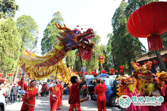 ????舞龍是廟會中的重頭戲,歡騰喜慶的舞龍表演點燃了游客的激情,大家紛紛歡呼雀躍,鼓掌叫好?,F場還有活力十足的舞獅表演、劃旱船、騎驢戲春、文武財神送喜、滇劇折子戲展演等活動,這些極具特色的民俗活動讓游客們仿佛回到了幾十年前的老昆明。據介紹,這些非常地道的民俗活動,意圖再現原汁原味的傳統(tǒng)廟會勝景,把傳統(tǒng)廟會原汁原味展示給更多的市民,尤其是讓年輕的一代感知、體驗中國傳統(tǒng)歷史文化,從而使傳統(tǒng)得到進一步弘揚。
