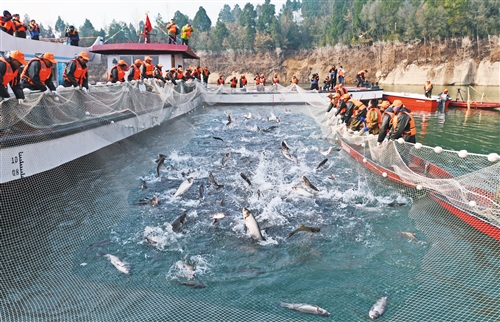 ????產(chǎn)業(yè)規(guī)模不小、比較效益不高的狀況正在改變—— 中國漁業(yè)何以“減量增收” 經(jīng)濟日報·中國經(jīng)濟網(wǎng)記者 喬金亮 近年來,四川省廣元市大力推進白龍湖、亭子湖等淡水湖泊的庫區(qū)環(huán)境系統(tǒng)治理,改善湖泊生態(tài)環(huán)境。圖為2018中國廣元·白龍湖亭子湖生態(tài)有機魚開捕儀式。 新華社記者 蕭永航攝