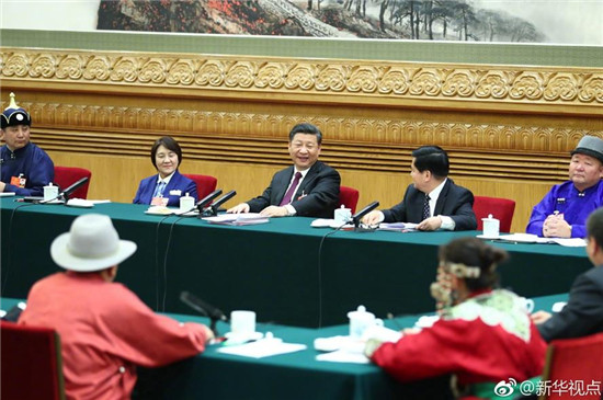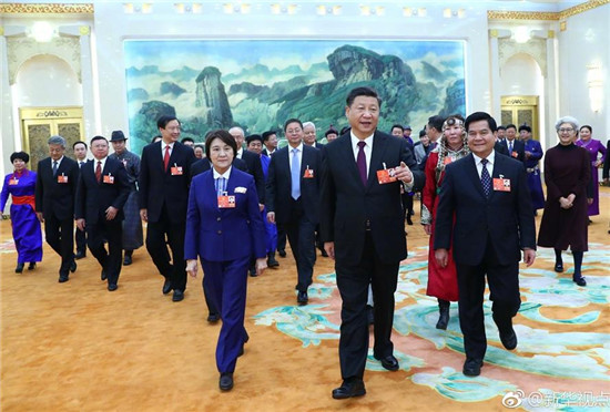 ????在認真聽取代表發(fā)言后,習近平作了發(fā)言。他首先表示完全贊成政府工作報告,強調政府工作報告體現(xiàn)了黨的十八大以來黨中央的一系列決策部署,體現(xiàn)了黨的十九大精神,回顧了過去5年政府工作情況和成就,提出了今年政府工作目標任務。