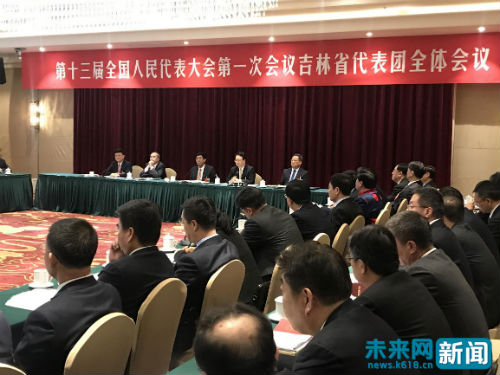 2018年3月6日下午,吉林省代表團(tuán)召開全體會(huì)議。 未來網(wǎng)記者 謝青攝