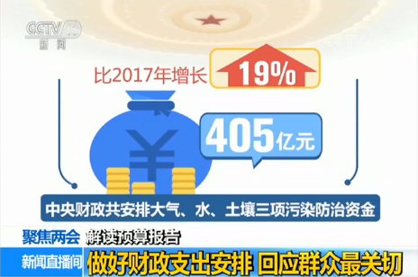 ????著力解決突出環(huán)境問題。中央財(cái)政共安排大氣、水、土壤三項(xiàng)污染防治資金405億元,比2017年增長(zhǎng)19%。