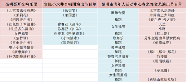 ????最后昆明市老年人活動中心將為來賓們獻上春之舞文藝演出,節(jié)目包括器樂合奏《北京喜訊到邊疆》、舞蹈《春之聲云之南》、女聲獨唱天邊、男聲獨唱等,異彩紛呈的節(jié)目將盡情展現(xiàn)老年人豐富多彩的精神氣質(zhì)。