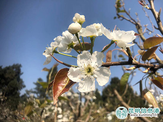 ????昆明信息港訊 記者馬文燾 “忽如一夜春風(fēng)來,千樹萬樹梨花開?!?月18日,“相約秋木箐 共享梨花宴”2018第四屆秋木箐梨花節(jié)在昆明馬金鋪一丘田秋木箐寶珠梨莊園啟動?;顒訌?8日持續(xù)至19日為期兩天,除了賞花、拍花、踏青之外,市民們還能品嘗當?shù)靥厣〕裕瑓⒓訑z影比賽。