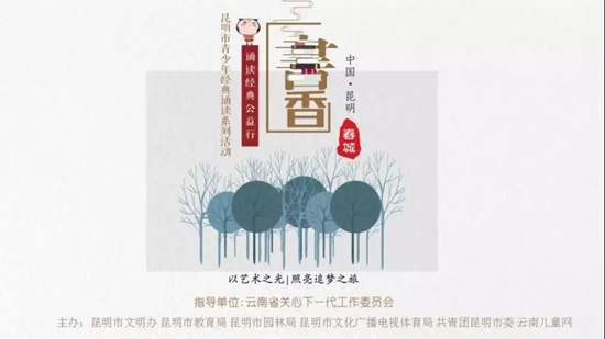 ????作為以聲音溝通心靈橋梁,以誦讀感受城市文化精神的系列活動(dòng),2017年《書香春城 經(jīng)典誦讀公益行》昆明市青少年誦讀經(jīng)典系列活動(dòng)從昆明大觀樓的五百里滇池出發(fā),走過了講武堂的百年風(fēng)云,走進(jìn)了鄭和故鄉(xiāng)晉寧,體會(huì)大山到大海的博大胸懷,走入了昆明書城和多所昆明市中小學(xué)和大學(xué)的校園,用誦讀經(jīng)典的方式,一起了解昆明這座城市的歷史和文化,體會(huì)城市精神?;顒?dòng)中昆明市多所中小學(xué)、幼兒園和大學(xué)相繼參與了活動(dòng),為廣大市民呈現(xiàn)了許多精彩的誦讀節(jié)目。