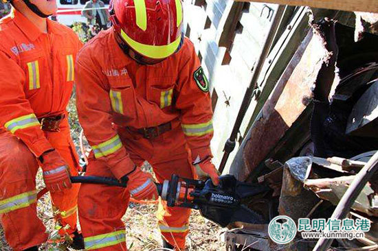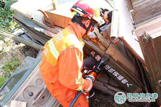 ????昆明信息港訊 記者勞學(xué)麗 通訊員孟鑫 3月21日16時(shí)20分,保山騰沖市公安消防大隊(duì)接到報(bào)警稱,騰沖市中和鎮(zhèn)至新歧村路段發(fā)生一起交通事故,一輛拖拉機(jī)撞到公路邊的土堆上,導(dǎo)致2人被困,急需救援。該大隊(duì)立即出動(dòng)一輛搶險(xiǎn)救援車和7名救援官兵火速趕赴現(xiàn)場(chǎng)。