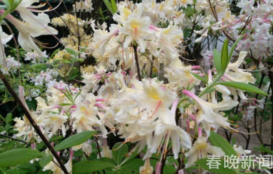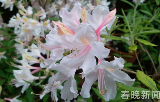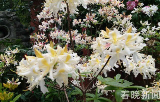 ????22日上午,晚報記者來到金殿太和宮,看到有工人正在布展一種很漂亮的花。仔細(xì)看,花分純白色、淡黃色、黃色等3色,形似丁香花又像小百合花朵,很難與一般杜鵑花聯(lián)系起來,花期卻與杜鵑花期相同。