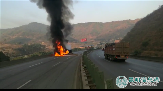 ????昆明信息港訊 記者合宇聰 3月25日上午,記者從云南省交警總隊高速公路交巡警支隊昆楚大隊獲悉,25日上午8時許,昆楚高速公路楚雄往昆明方向96公里處,一輛大貨車發(fā)生自燃,昆楚高速公路交巡警大隊民警在大平地采取臨時交通管制。