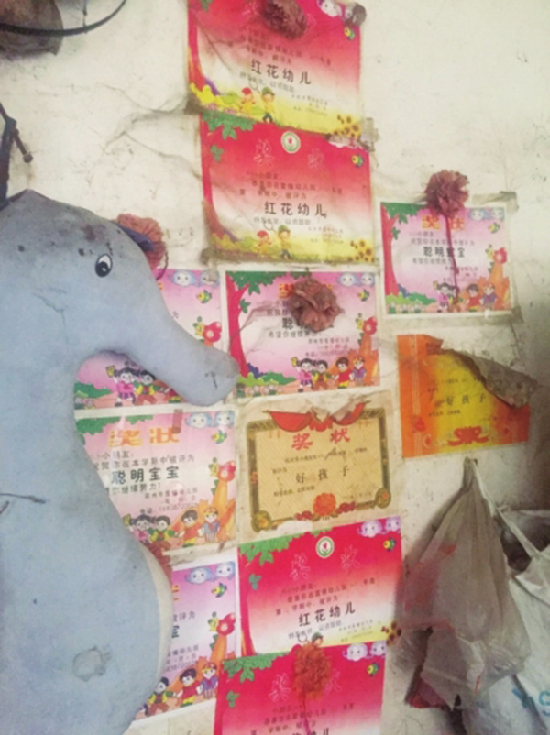 ????他們?nèi)缃褡〉臉欠渴亲鈦淼模粯浅藘蓮埓餐舛褲M了拾來的廢品,二樓也同樣。整個(gè)房間散發(fā)著一股子濃重的酸味,讓鄰居們望而卻步,唯有墻上的獎(jiǎng)狀整齊、醒目,讓人很是羨慕,這也給他們老兩口一絲安慰。住在這里,每年需要支付6000元的房租,這讓他們很是力不從心,但卻又不能離開——因?yàn)檫@里不僅能讓孩子們就近上學(xué),也提供了他幫家屬院清運(yùn)垃圾和拾廢品的工作。