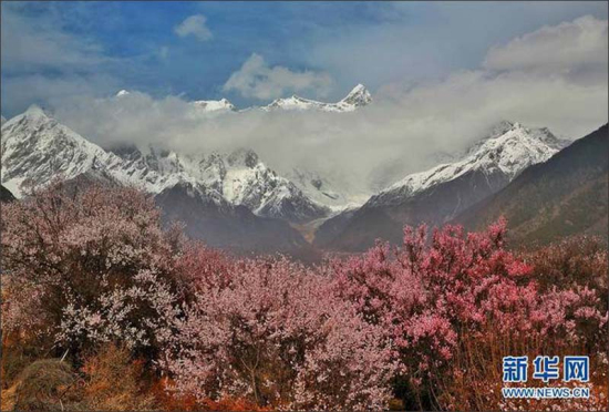 南迦巴瓦峰腳下鮮花盛開(4月6日攝)。