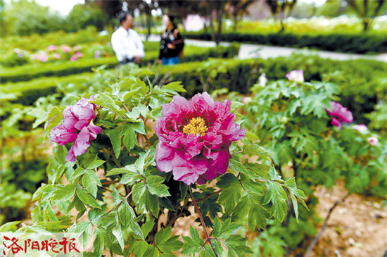 ????昨日,在國際牡丹園萬芳園內(nèi),洛陽牡丹專家利用克隆技術(shù)培育的洛陽紅首次綻放,不少游客有幸在現(xiàn)場一睹克隆牡丹真容。