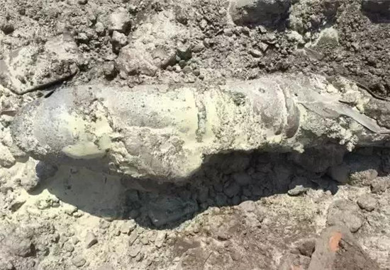 ????2017年6月14日早上5時許,四平市公安局鐵西分局北溝街派出所接到一施工單位報警稱:在某小區(qū)施工中,鉤機挖出一枚炸彈,炸彈直徑約為20公分,長約60至70公分,其中一部分還埋在土里。