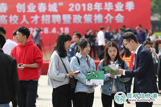 ????????昆明信息港訊 記者任驥遠(yuǎn) 實習(xí)記者曹琳 4月18日,“放飛青春 創(chuàng)業(yè)春城”2018年畢業(yè)季昆明高校人才招聘暨政策推介會活動在云南民族大學(xué)舉行。本次推介會邀請到中央和省、市300余家國有及非公企業(yè)參與,提供了超3000個工作崗位,吸引并留住高校畢業(yè)生落戶就業(yè)昆明。大會還對昆明市進(jìn)一步放寬落戶限制、大學(xué)生畢業(yè)可先落戶再擇業(yè)等相關(guān)政策進(jìn)行了推介。