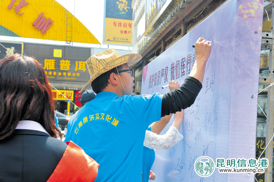 ????昆明信息港訊(昆明日報(bào) 記者李丹丹) 昨日下午,2018年云南省“4·26”版權(quán)宣傳周主會(huì)場專題活動(dòng)在云南財(cái)經(jīng)大學(xué)北院匯文禮堂啟動(dòng)。近千名財(cái)大學(xué)子和在昆高校的部分學(xué)生紛紛來到活動(dòng)現(xiàn)場,在巨幅主題展板上莊重簽下自己的名字,立誓保護(hù)創(chuàng)作,保護(hù)知識產(chǎn)權(quán)。