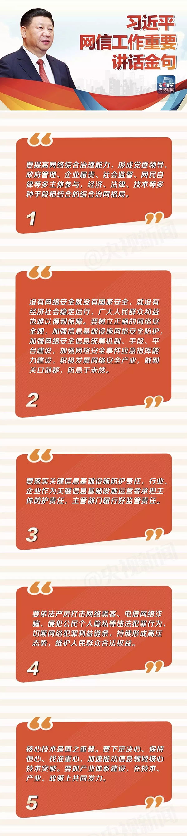 總書記的講話站在人類歷史發(fā)展和黨和國家全局高度,科學(xué)分析了信息化變革趨勢和我們肩負(fù)的歷史使命,系統(tǒng)闡述了網(wǎng)絡(luò)強國戰(zhàn)略思想,深刻回答了事關(guān)網(wǎng)信事業(yè)發(fā)展的一系列重大理論和實踐問題,是指導(dǎo)新時代網(wǎng)絡(luò)安全和信息化發(fā)展的綱領(lǐng)性文獻(xiàn)。