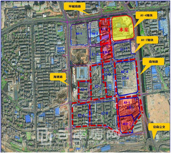 螺螄灣開發(fā)整理項(xiàng)目10個(gè)地塊大體位置(紅色區(qū)域內(nèi)為即將拆遷的4個(gè)地塊位置)