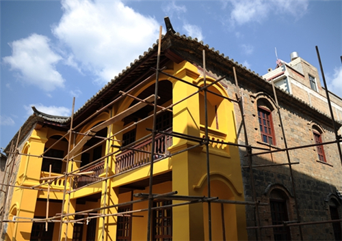 正在修繕中的龍氏墓廬。昆明日?qǐng)?bào) 記者趙偉攝