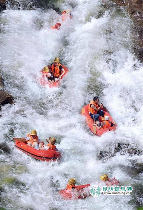 隨著氣溫升高,清涼的水越來越具吸引力。這個(gè)五一假期,快到祿勸縣的昆明浪海子大峽谷漂流景區(qū)感受不一樣的驚險(xiǎn)刺激。昆明浪海子大峽谷漂流景區(qū)位于轎子山旅游景區(qū)腳下,海拔1900米,春夏季氣溫19至28度。景區(qū)起漂碼頭始于轉(zhuǎn)龍鎮(zhèn)恩祖村委會(huì)所在地,止于幻橋村,全長5.6公里,落差86米,有11個(gè)驚險(xiǎn)刺激的漂流點(diǎn),用時(shí)1.5至2小時(shí)。在這里,游客不僅能欣賞壯麗的轎子山五旗峰,更能零距離接觸大自然,一邊享受漂流樂趣,一遍欣賞沿途美麗的風(fēng)景。