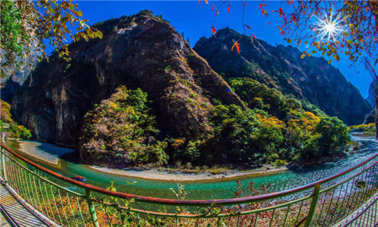 香格里拉大峽谷棧道全長2.5公里,與靜靜流淌的崗曲河平行,日日夜夜聆聽著河流的低語。在峽谷的盡頭,可以選擇一次刺激的觀光漂流之旅。