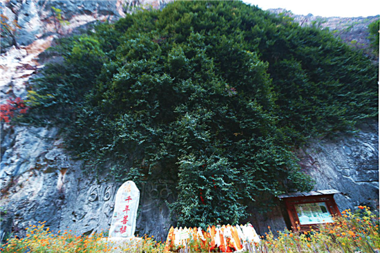 在景區(qū)入口處,有著一棵千年菩提樹,據(jù)植物專家的考證已有三千多年的樹齡。它穿越千年時光,在巴拉格宗這片神奇的土地上,傍倚峭壁,櫛風(fēng)沐雨千年而依舊郁郁蔥蔥,生機勃勃,繁茂生長,只有碗口粗的主干卻爬滿了400多平米的崖壁,讓人無不對這神樹的強盛生命力而贊嘆。