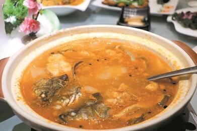 對不少吃貨來說,一份檸檬魚或是酸菜魚便能吃到滿足,然而這并非酸爽的最高境界,因為試過小柿子酸湯魚或能頓悟其中的玄妙。據(jù)東莞某國際大酒店主廚透露,將貴州小柿子用當?shù)氐膫鹘y(tǒng)手法發(fā)酸,加上姜蒜等味料調(diào)制成濃稠適宜、酸味勁足的酸湯,鮮魚切成片,連同魚頭煮上幾分鐘即可新鮮上桌。