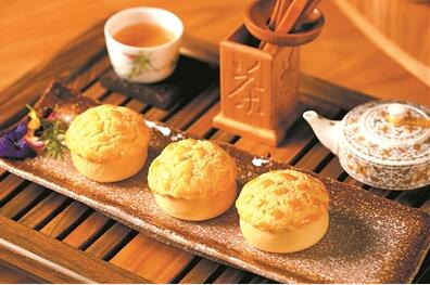 香港人嘗試在餐包上涂上一層由砂糖、雞蛋和牛油做的酥皮,高溫焗后的酥皮開始爆裂,形成裂紋,看著像菠蘿的紋路,于是有了這個形象的名字“菠蘿包”。早期的菠蘿包是沒有菠蘿的,香港人喜歡將其攔腰切出一道口子,塞進冰冷的黃油,這就是菠蘿油;現(xiàn)在,有的酒樓食肆為了滿足食客們,在菠蘿包里加入菠蘿內(nèi)餡,至此,菠蘿包終于成為名副其實的“菠蘿包”。某酒店的桃園館和某亭皆有供應“真材實料”的菠蘿包,精選臺灣鳳梨味餡料,以面粉和酵母加入涼白開水后搓成面團發(fā)酵后,再用雞蛋、牛油、白砂糖和入面粉搓成的面團拍成一層皮蓋在面包表面,放入烤爐烤制15分鐘左右。