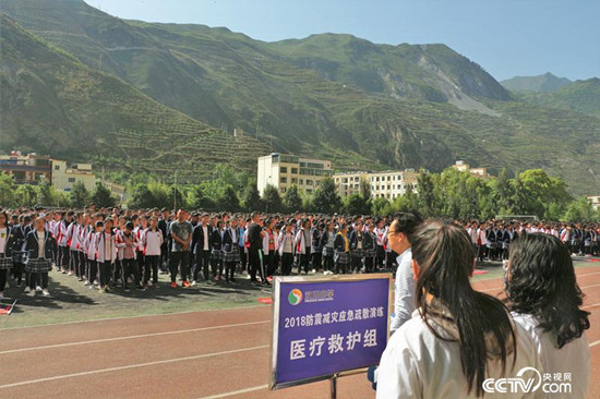 原來,這是汶川中學(xué)正在舉行的2018防震減災(zāi)應(yīng)急疏散演練。汶川中學(xué)副校長(zhǎng)吳國(guó)安告訴記者:“汶川中學(xué)從重建以后,每周一升旗儀式多了一項(xiàng)特殊意義:應(yīng)急疏散演練,近十年來一直都是這么做的。當(dāng)然,平時(shí)周一的演練不會(huì)拉響警報(bào),但會(huì)計(jì)時(shí)、總結(jié)逃生通道是否堵塞、線路規(guī)劃是否合理等。我們希望每個(gè)孩子的腦中都有一個(gè)無形的警鐘,無論在任何災(zāi)難面前,給自己多一分生存的機(jī)會(huì)。”