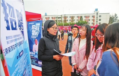 這是近日在云南中醫(yī)學(xué)院舉辦的云南省2018年醫(yī)藥類畢業(yè)生雙向選擇洽談會上的一幕。當(dāng)天,共有來自省內(nèi)外醫(yī)院、藥品生產(chǎn)流通單位、外國大型醫(yī)藥企業(yè)等400余家單位提供醫(yī)藥類崗位萬余個。