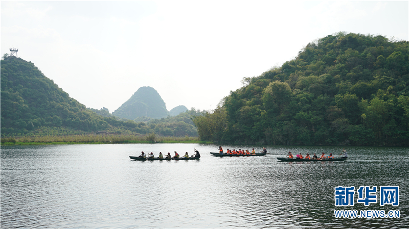 圖為游客在普者黑景區(qū)內(nèi)劃船游玩。(新華網(wǎng) 丁凝攝)