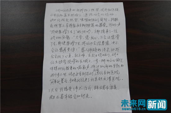 本意恢復(fù)健康后和孩子們一起去向領(lǐng)導(dǎo)和戰(zhàn)士們當(dāng)面致謝,但種種原因拖延至今。又到了五一節(jié),一年過去了,我老伴的主意,寫一封感謝信,表達(dá)我們的心意。感謝消防隊官兵,向你們致禮!”