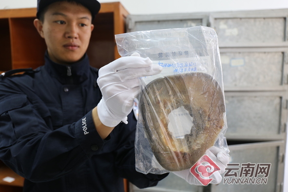 5月7日,昆明海關(guān)隸屬騰沖海關(guān)關(guān)員在對(duì)一個(gè)入境包裹進(jìn)行過(guò)機(jī)檢查時(shí),發(fā)現(xiàn)該包裹圖像異常,經(jīng)轉(zhuǎn)人工查驗(yàn)后在包裹查獲一塊呈環(huán)狀的犀牛角制品,重量為757克。