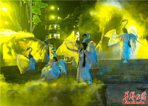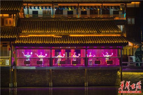 穿紫河風(fēng)情燈光實(shí)景秀,充分挖掘常德豐厚的人文底蘊(yùn),賦予穿紫河風(fēng)光帶濃郁的水鄉(xiāng)風(fēng)情。唐俊 傅聰 攝