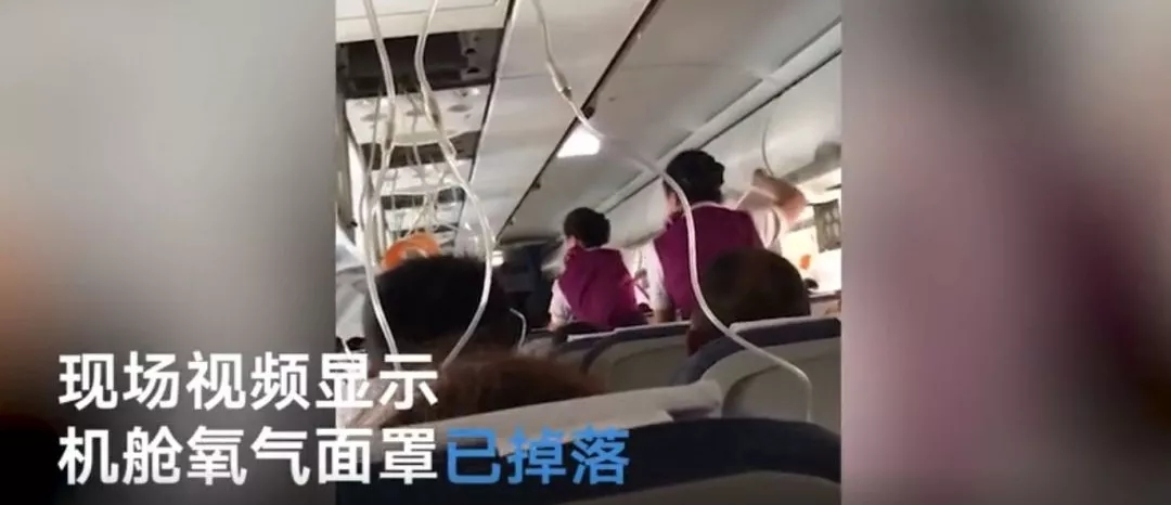 據(jù)乘客拍攝的視頻顯示,機艙內(nèi)氧氣面罩已經(jīng)脫落,由于顛簸,地面上散落雜物。