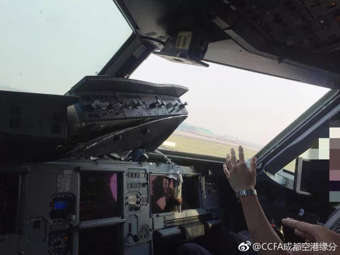據(jù)@CCFA成都空港緣分 微博爆料稱,3U8633次航班飛臨成都上空時,副駕駛一側(cè)駕駛艙玻璃破碎,隨后飛機掛出7700緊急代碼,并立即備降成都雙流國際機場。