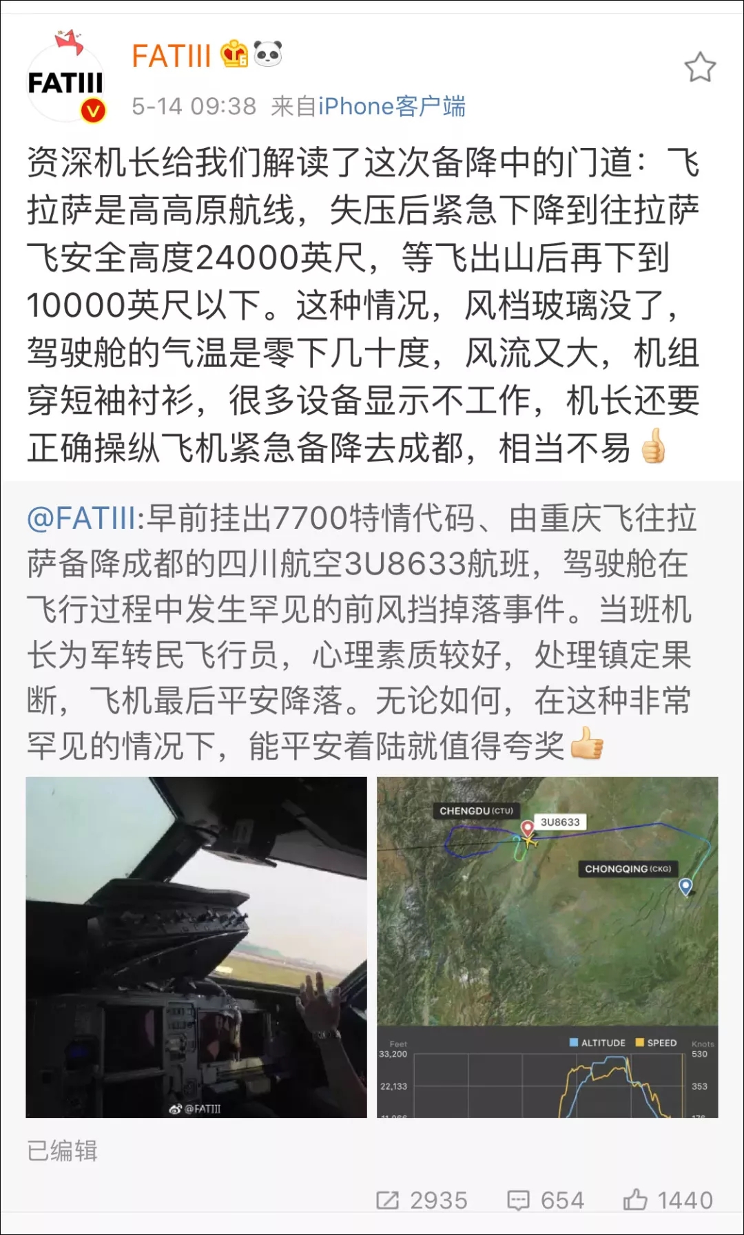 今天上午,川航3U8633航班完成了今年最驚險的緊急著陸。