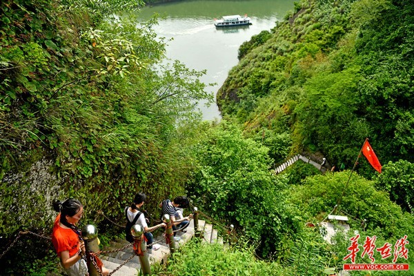 夷望溪流域群山環(huán)抱,兩岸翠竹芊芊,掩映成排,匯入沅江處有水心寨主峰屹立江中,將夷望溪一劈為二,溪水自兩側(cè)環(huán)繞注入沅江……5月14日下午,“美麗中國長江行——共舞長江經(jīng)濟(jì)帶·生態(tài)篇”湖南站媒體團(tuán)來到常德桃源縣夷望溪,泛舟溪上,領(lǐng)略“小桂林”的怡人風(fēng)光。在被沅水河貫穿全境99公里的桃源縣,堅(jiān)持生態(tài)立縣,以“水”為題,做活、做好、做美水文章,夷望溪就是其不斷加強(qiáng)河湖治理與保護(hù)的一個縮影。