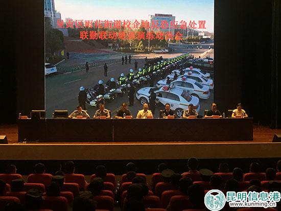 昆明信息港訊 記者楊炎 5月16日,昆明市呈貢區(qū)雨花街道2018年校企地反恐應(yīng)急處置聯(lián)勤聯(lián)動動員會在昆明醫(yī)科大學(xué)舉行,轄區(qū)高校、重點企業(yè)安保人員及派出所民警300余人參加。
