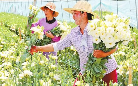 近年來,紅河哈尼族彝族自治州把特色花卉產(chǎn)業(yè)作為全州農(nóng)業(yè)“六大產(chǎn)業(yè)”之一重點(diǎn)發(fā)展,通過強(qiáng)化組織推進(jìn)集群發(fā)展、科技引領(lǐng)提升發(fā)展質(zhì)量、扶持龍頭企業(yè)規(guī)模發(fā)展、三產(chǎn)融合延伸產(chǎn)業(yè)鏈條和科學(xué)規(guī)劃建設(shè)產(chǎn)業(yè)園區(qū)“五大抓手”助推特色花卉產(chǎn)業(yè)高效發(fā)展。目前,全州特色花卉種植面積達(dá)1.44萬公頃,位居全省第2位,綜合產(chǎn)值達(dá)28.2億元。圖為蒙自市草壩鎮(zhèn)花卉種植基地,花農(nóng)正在采收洋桔梗花。(云南日報(bào) 記者楊崢/攝)