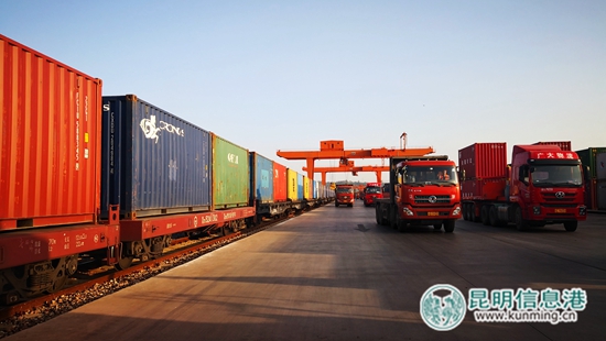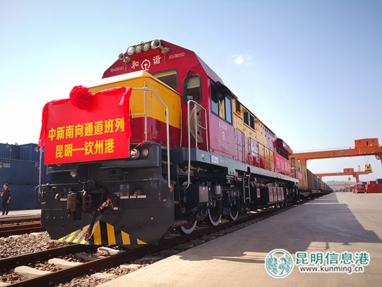 “中新南向通道班列(昆明——?dú)J州港)”由鐵路集裝箱和海運(yùn)集裝箱組成,采取集裝箱原箱下海出境的方式,改變了以往云南出口物資在港口拆箱換裝或散貨直接裝船的模式,為云南大宗物資出口提供了新的物流解決方案,實(shí)現(xiàn)一站式直達(dá),真正發(fā)揮集裝箱多式聯(lián)運(yùn)的優(yōu)越性,實(shí)現(xiàn)貨物全程零損耗。