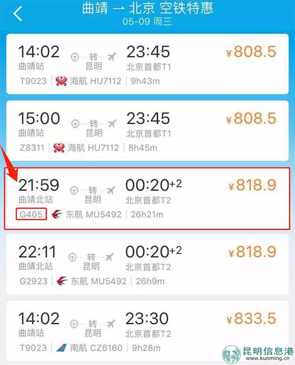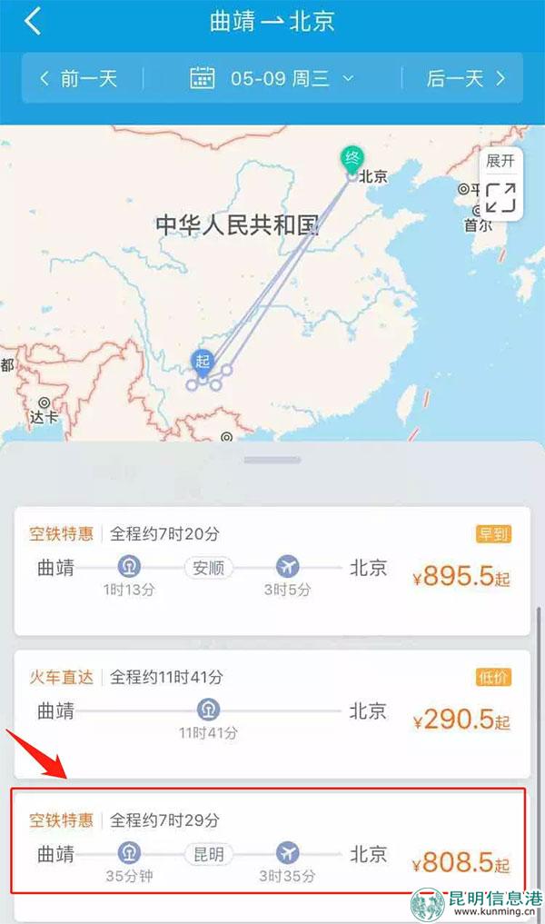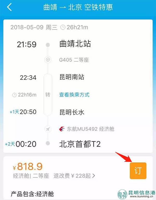 2、 選擇昆明中轉(zhuǎn)空鐵特惠;