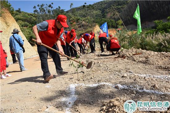 昆明信息港訊 記者楊炎 “綠色發(fā)展先行,構(gòu)建宜居環(huán)境”,5月18日,昆明市宜良縣2018年“美麗中國夢·黨員志愿林”植綠行動啟動儀式在68道拐英雄溝南段舉行。當(dāng)天,宜良縣通過網(wǎng)絡(luò)招募的110名黨員志愿者和來自縣機關(guān)單位、街道的工作人員共260余人參加了植樹活動。