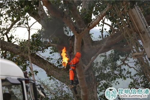 消防官兵首先攻克的第一個(gè)難點(diǎn)就是52米高處巨型蜂窩,蜂窩長約1.8米,參戰(zhàn)官兵在保護(hù)繩的牽引下逐級(jí)攀爬至52米高的塔架處,采取先火攻后摘取的的戰(zhàn)術(shù),順利摘除蜂窩,首戰(zhàn)告捷。